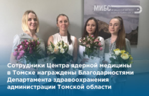 Сотрудники Центра ядерной медицины МИБС в Томске получили от Департамента здравоохранения администрации Томской области Благодарности за многолетний добросовестный труд. Награждение было приурочено к празднованию Дня медицинского работника.